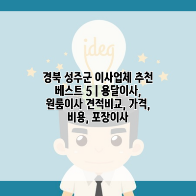 ✅ 경북 성주군 최적의 이사 비용과 견적을 비교해보세요!